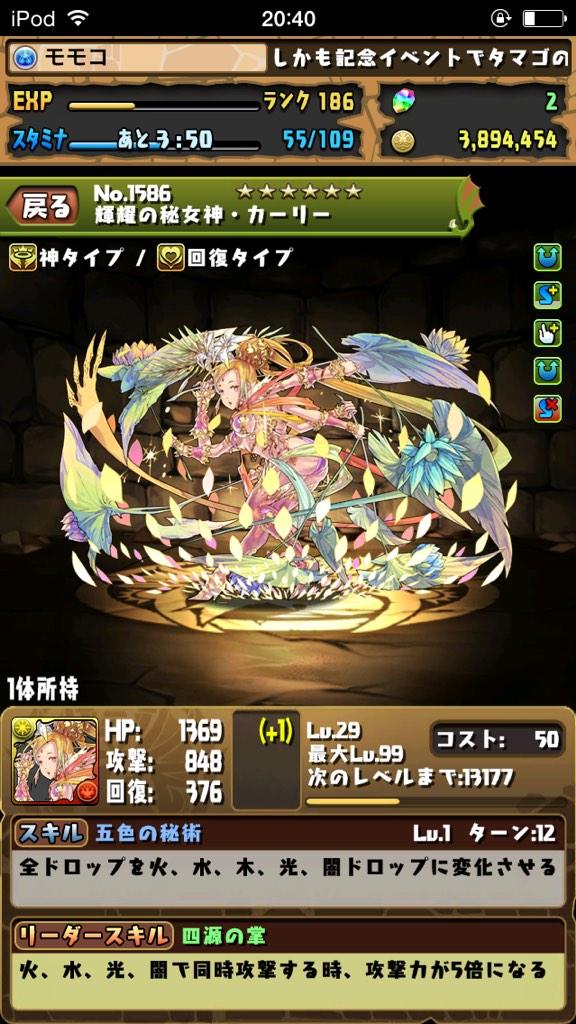 五色 の 秘術 スキル 上げ-コメント(52) TB(0) 70 iPhone774G@\(^o^)/ (火) IDgaULj/le0net 闇カーリーのスキル使ってみた 77 iPhone774G@\(^o^)/ (火) スキル 五色の秘術 (ターン:12→7) 全ドロップを火、水、木、光、闇ドロップに変化。 リーダースキル 四源邪聖掌 神と悪魔タイプの攻撃力が3倍、ドロップ操作を1秒延長。 火水光闇の同時攻撃で攻撃力が4倍、回復力は2倍。 覚醒スキル